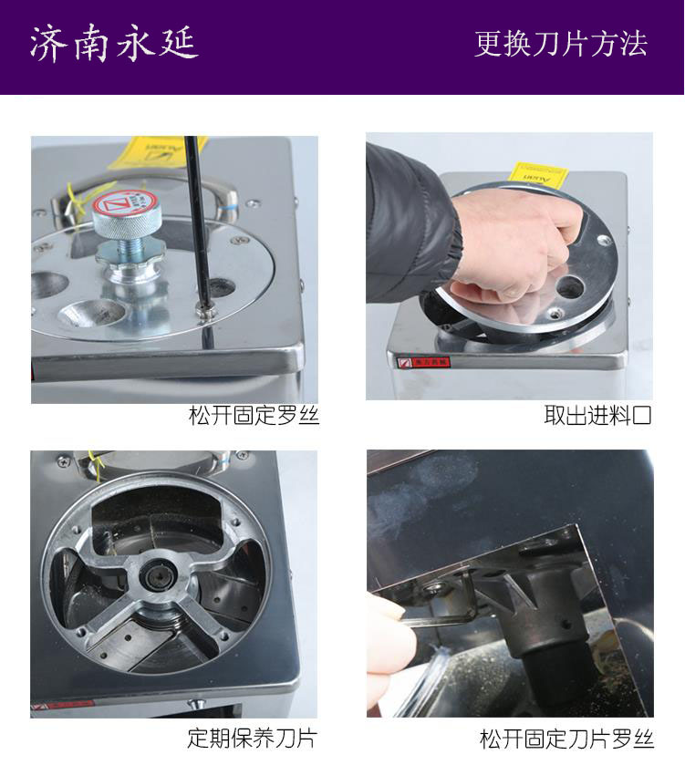 的表現(xiàn)。單相電機(jī)匹配,刀盤(pán)上安裝三把刀片,可任意調(diào)節(jié)厚薄,切