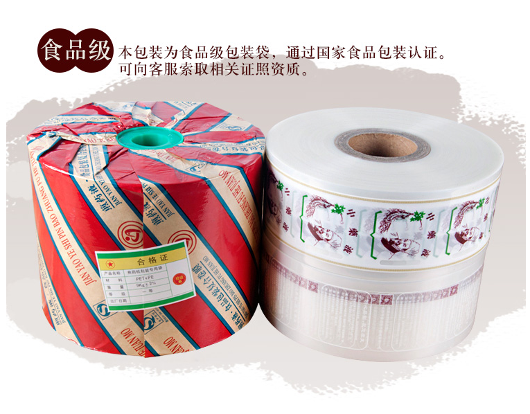 卷膜是自動包裝機用的,做成卷狀。卷膜一般用復合材料制成。牛奶羊奶豆?jié){液體醬料包涼皮液體等小包裝一般用卷膜來自動包裝,以提高生產效率,節(jié)約人工成本。卷膜的材料與普通復合袋相似,只是不需要預先制成袋子。